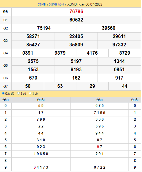 Dựa trên bảng kết quả xskt Miền Bắc hôm qua ngày 06/07/2022, chúng ta có được những thông tin sau: