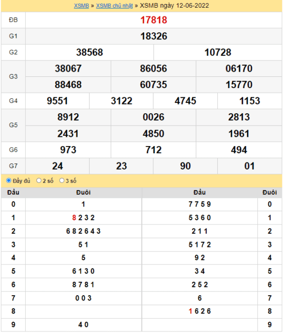 Dựa trên bảng kết quả xskt Miền Bắc hôm qua ngày 12/06/2022, chúng ta có được những thông tin sau: