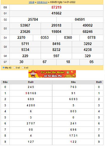 Trước khi dự đoán xổ số miền Bắc ngày 15/01/2022 mời các bạn cùng xem lại kqxs miền Bắc ngày 14/01/2022