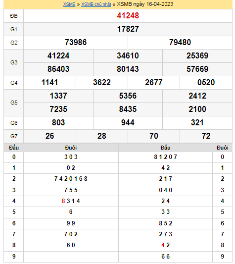 Kết quả XSMB ngày 16/04: