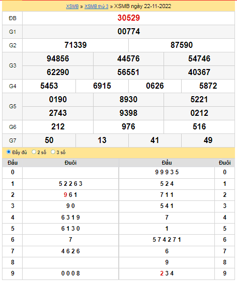 Dựa trên bảng kết quả xskt Miền Bắc hôm qua ngày 23/11/2022, chúng ta có được những thông tin sau: