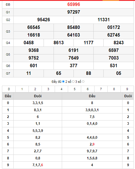- Giải đặc biệt: đầu 4 – đuôi 2
