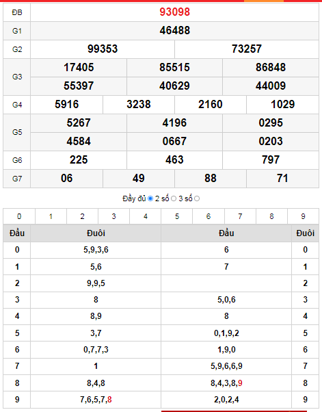- Giải đặc biệt: đầu 5 – đuôi 3