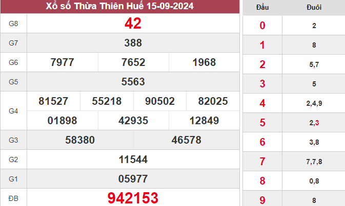 ✔️Xem lại bảng kết quả XSKT Huế kỳ quay trước 15/9/2024