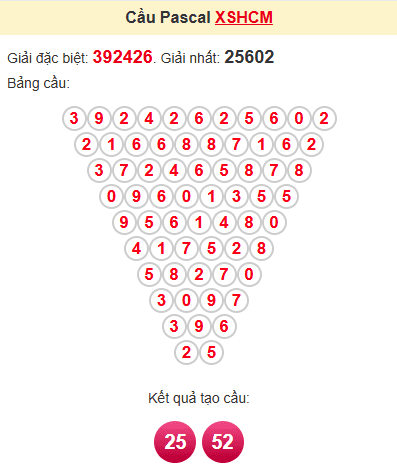 Thống kê cầu pascal xổ số TP. Hồ Chí Minh tính theo công thức Pascale trong toán học dựa theo dữ liệu bảng kết quả ngày quay gần nhất giúp người chơi dễ dàng tính toán để chọn ra những bộ số may mắn của ngày hôm nay