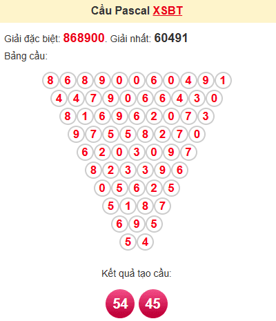 Thống kê cầu pascal xổ số Bến Tre tính theo công thức Pascale trong toán học dựa theo dữ liệu bảng kết quả ngày quay gần nhất giúp người chơi dễ dàng tính toán để chọn ra những bộ số may mắn của ngày hôm nay