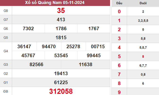 ✔️Xem lại bảng kết quả xổ số kiến thiết Quảng Nam kỳ quay trước 5/11/2024