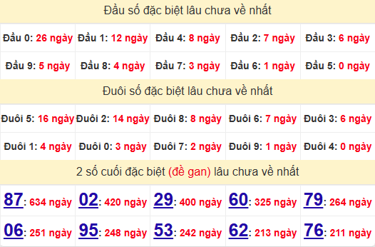 Đầu – đuôi, Thống kê 2 số cuối giải đặc biệt XSHCM lâu về