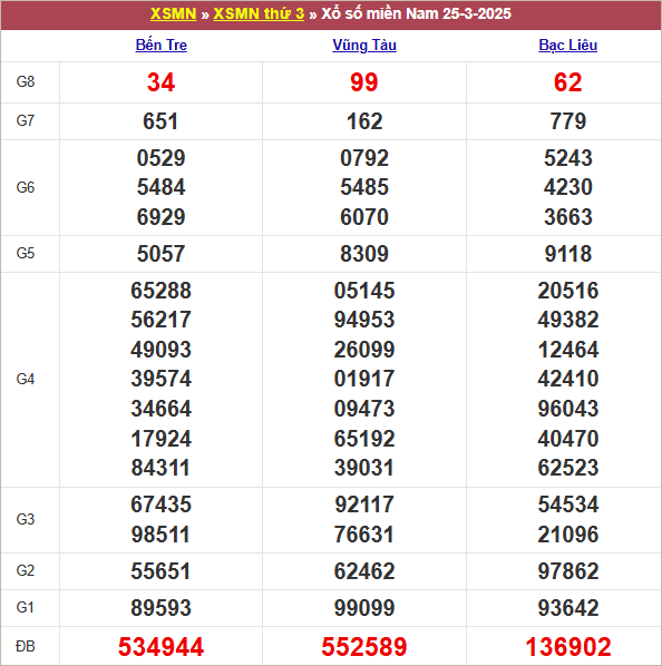 Tham khảo dự đoán KQXSMN thứ 3 bao lô 3 đài (XSBT, XSBL, XSVT) miễn phí 100% được chốt dựa vào thuật toán xác suất thống kê kết hợp cùng phân tích kết quả XSMN Th3.