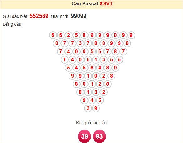 Kết quả nhận được từ soi cầu Pascale là cặp lô thần tài: 39 – 93