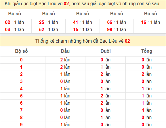 Thống kê giải đặc biệt Bạc Liêu hôm sau