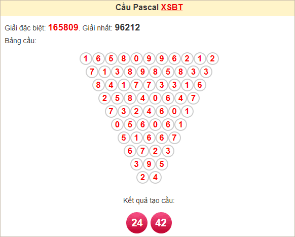 Kết quả nhận được từ soi cầu Pascale là cặp số may mắn:24 – 42