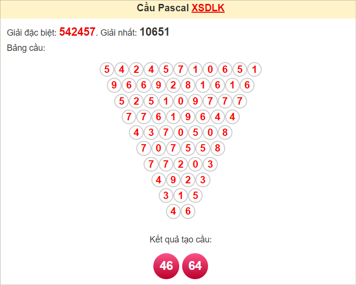 Kết quả nhận được từ soi cầu Pascale là cặp lô VIP: 46 – 64