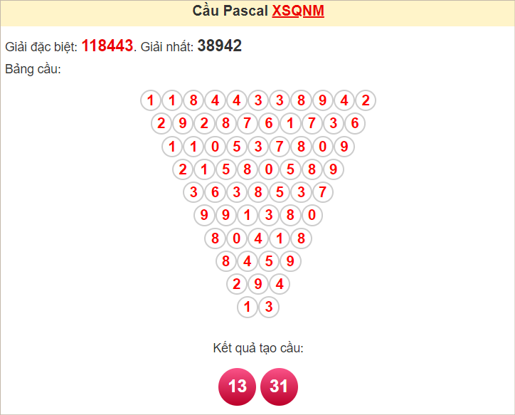 Kết quả nhận được từ soi cầu Pascal là cặp lô thần tài: 13 – 31