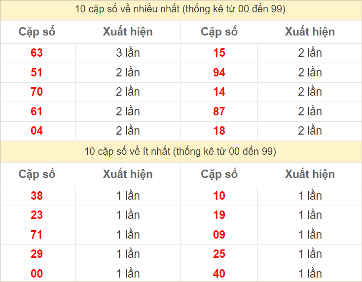 ⭐️ Thống kê 10 cặp số đặc biệt miền Trung thứ 3 về nhiều nhất – ít nhất trong 30 tuần gần đây: