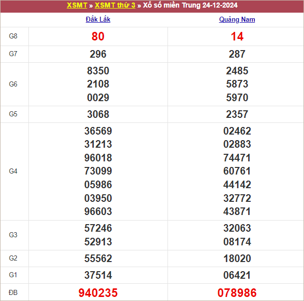 Bảng kết quả kỳ trước 24/12/2024