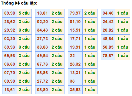 Bảng cầu lặp hôm nay – Cầu về cả cặp