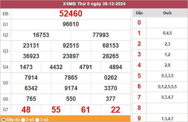 Bảng kết quả miền Bắc ngày 26/12/2024