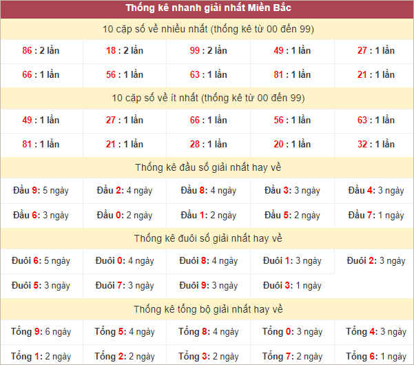 Thống kê hai số cuối giải đặc biệt miền Bắc ngày 8/11/2024