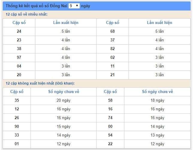 Sau đây là thống kê kết quả xổ số trong thời gian gần đây của nhà đài này: