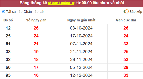 Thống kê lô gan Quảng Trị lì nhất
