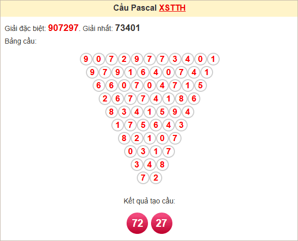 ⭐️ Kết quả soi cầu Pascale được song thủ lô: 72 – 27