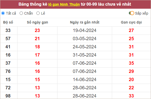 Thống kê lô gan Ninh Thuận lâu chưa về