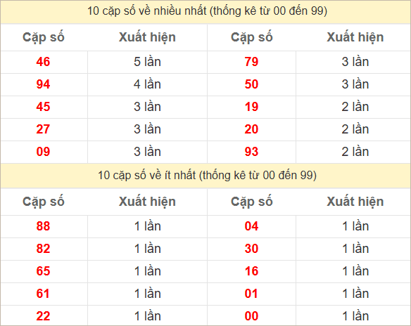 ⭐️ Thống kê 10 cặp số đặc biệt miền Trung thứ 5 về nhiều nhất – ít nhất trong 30 tuần gần đây: