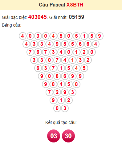 Thống kê cầu pascal xổ số BTH tính theo công thức Pascale trong toán học dựa theo dữ liệu bảng kết quả ngày quay gần nhất giúp người chơi dễ dàng tính toán để chọn ra những bộ số may mắn của ngày hôm nay