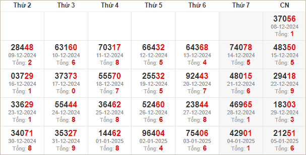 ✔️ Xem lại bảng kết quả miền Bắc 5/1/2025