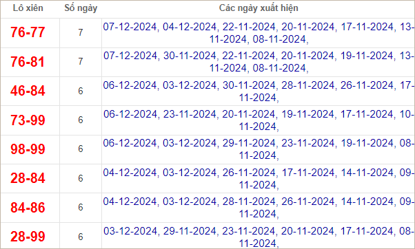 Cầu lô chạy 5 ngày qua (cầu dài nhất)