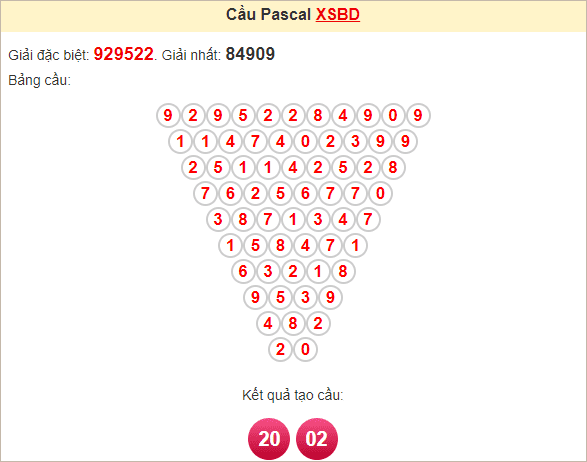 ⭐️ Kết quả nhận được từ soi cầu Pascale là cặp lô VIP: 20 – 02