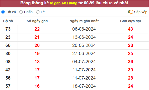 Thống kê đuôi giải đặc biệt An Giang lâu chưa về: