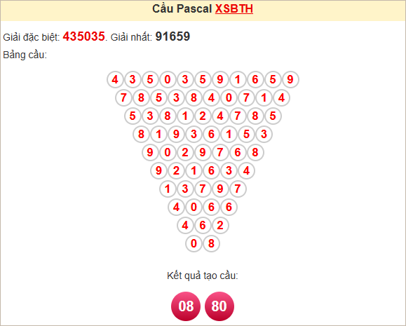 Kết quả Bình Thuận kỳ trước hình thành nên cầu Pascale như sau: