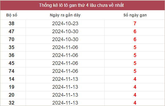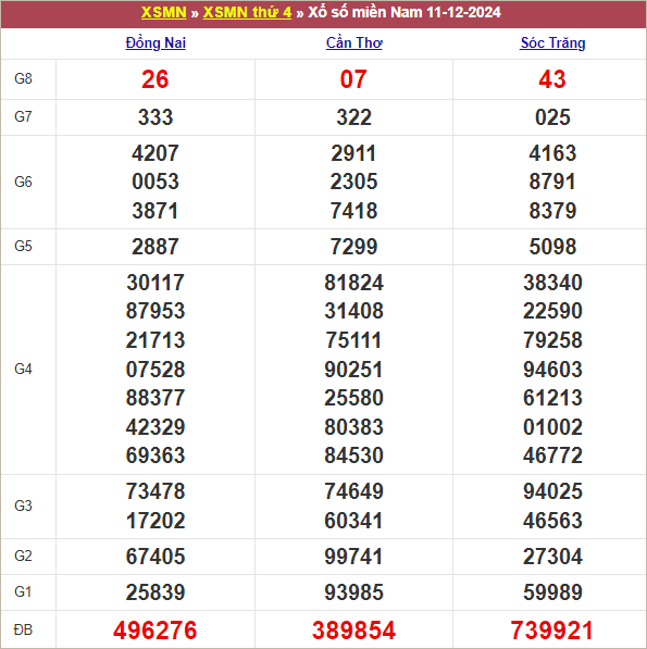 Bảng kết quả thứ 4 tuần trước 11/12/2024
