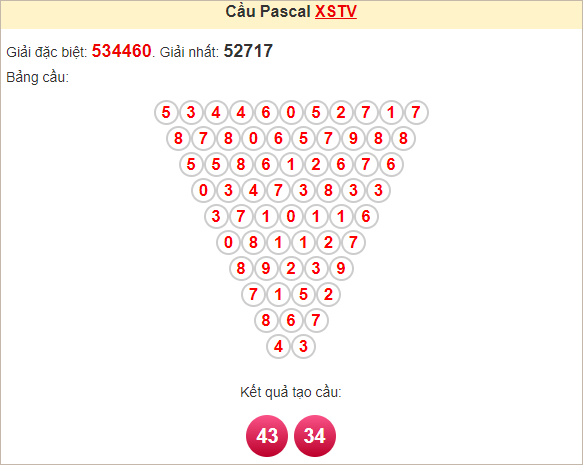 ⭐️ Kết quả nhận được từ soi cầu Pascale là cặp lô thần tài: 43 – 34