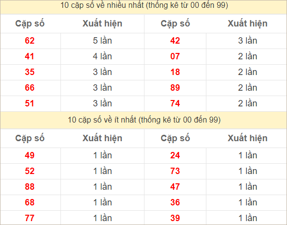 2 số cuối giải đặc biệt về nhiều nhất và ít nhất