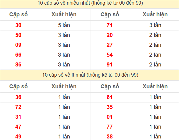 ⭐️ Thống kê 10 cặp số đặc biệt miền Nam chủ nhật về nhiều nhất – ít nhất trong 10 tuần gần đây: