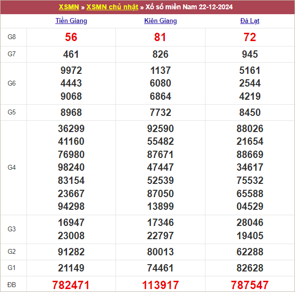 Bảng kết quả chủ nhật tuần trước22/12/2024