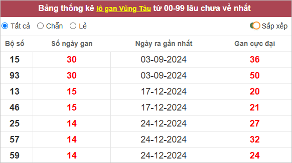 Thống kê lô gan Vũng Tàu lâu chưa về