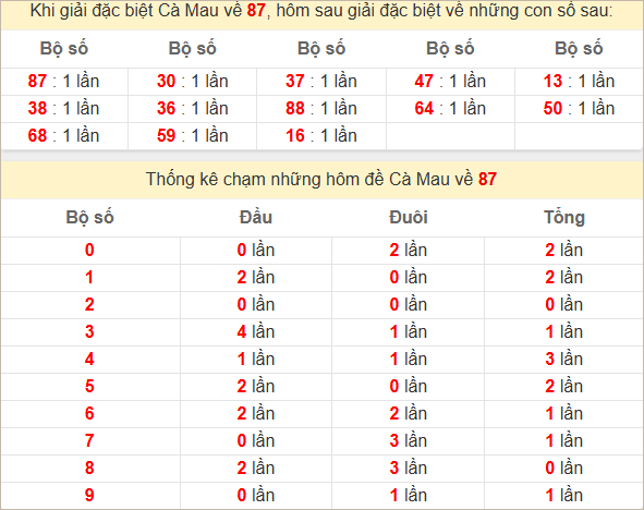Thống kê đặc biệt Cà Mau ra bữa sau