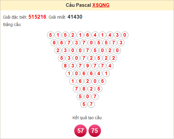 ⭐️ Kết quả nhận được từ soi cầu Pascale là cặp lô VIP: 57 – 75