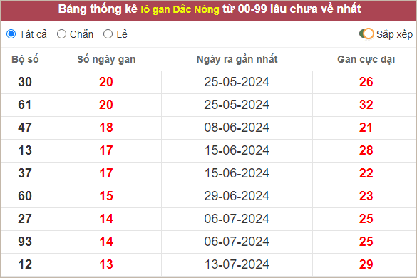 ⭐️ Thống kê đuôi giải đặc biệtĐắc Nông lâu chưa về nhất: