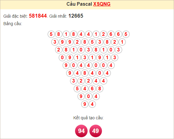 Kết quả Quảng Ngãi ngày 12/10/2024 hình thành nên cầu Pascale như sau: