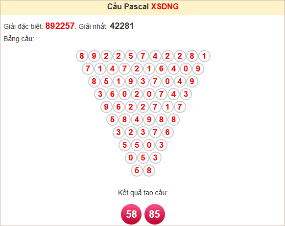 Kết quả từ soi cầu Pascale là cặp song thủ lô VIP khung 3 ngày: 58 – 85