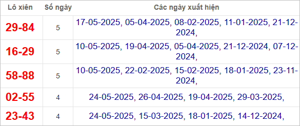 Bảng kết quả tuần trước 24/5/2025