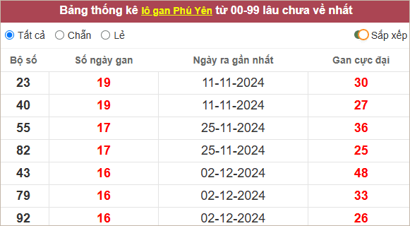 Lô gan xổ số Phú Yên lâu chưa ra nhất