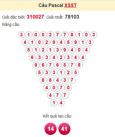 Bảng kết quả tạo Cầu Pascale ST 19/02/2025
